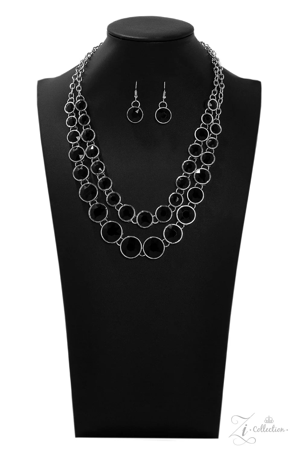 Radiating with faceted shimmer, glittery black rhinestones join into two timeless layers below the collar. Encased in sleek silver frames, the sparkling black gems gradually increase in size as they trickle toward the center for an iconic finish. Features an adjustable clasp closure.